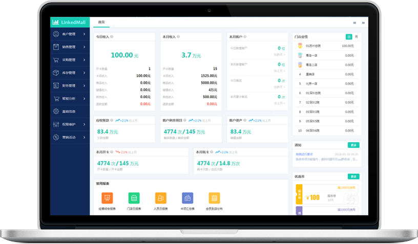 对门店、员工、客户、产品和服务进行全面的数据分析,呈现详尽的数据分析报表,更好地了解业务情况,助您全面整合、深度分析业务数据,做出智慧决策。